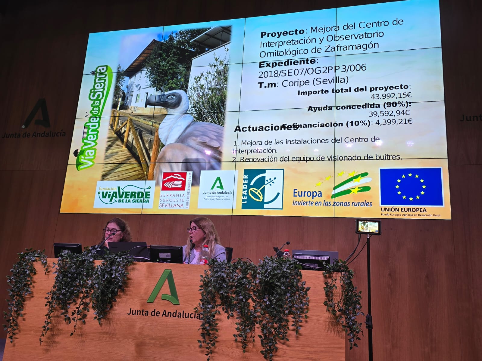 Nuestro GDR presentó como proyecto innovador de la comarca la iniciativa de la Fundación Vía Verde de la Sierra: “Mejora del Centro de Interpretación y Observatorio Ornitológico de Zaframagón”, de la mano de su gerente, María Jiménez. Una actuación que refuerza el valor ambiental, turístico y educativo de nuestro territorio.